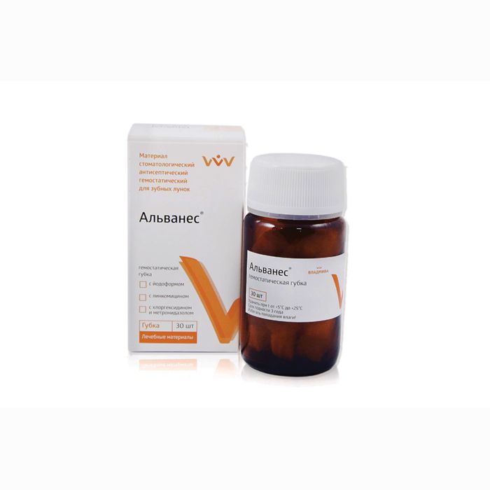 Альванес Губка гемостат. и антисепт., с йодоформом, 30шт, Владмива