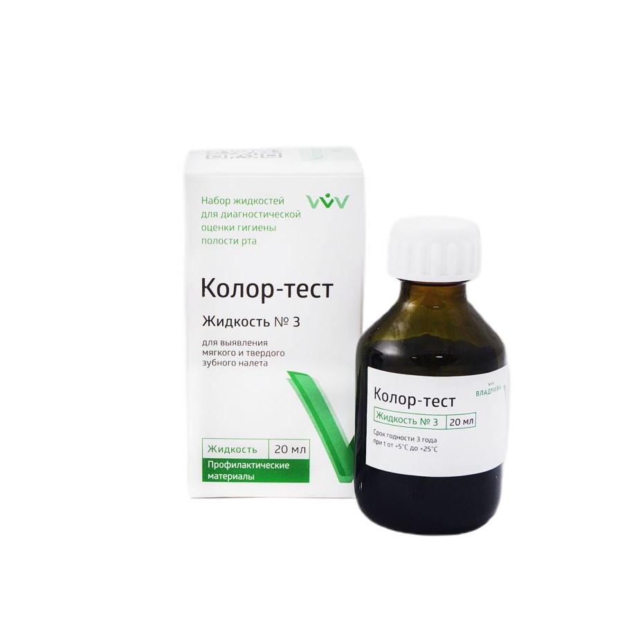 Колор-Тест №3 жид-ть для выявления мягкого зубного налёта, 20мл, Владмива